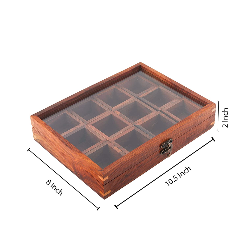 Ortus Arts® Sheesham Wood 12 Containers Spice Box with Spoon – Wooden Masala Box Set for Kitchen Masala Daani Namak Dani Dabba Multipurpose Decorative Boxes – wooden Spice Holder”Made In India”