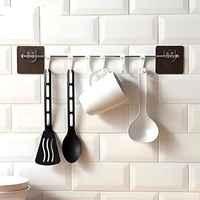 Wall Hanging Hooks | Item Organizer for Kitchen | Steel Wall Mounted Stand | Rack Hanging Stand | Cloth Hanger