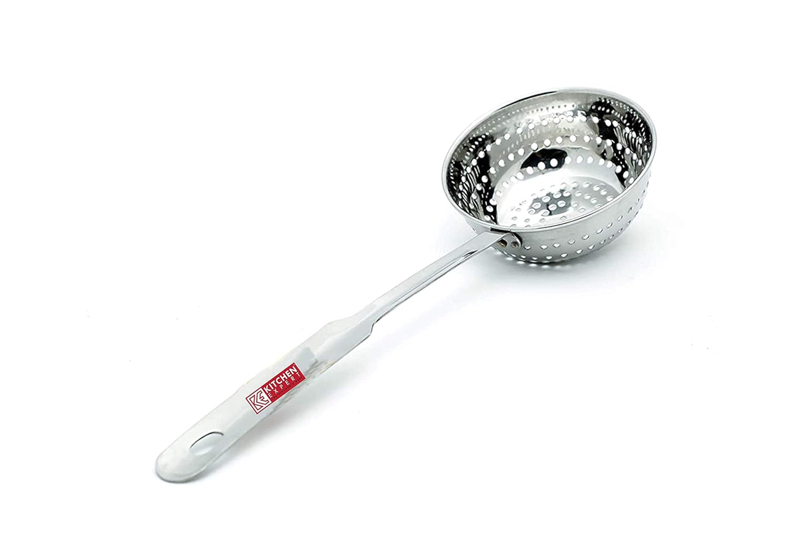 Kitchen Expert Stainless Steel Bowl Shaped Poha Jhaara/Handheld Colander/Strainer with Holes, 12 * 37 cm